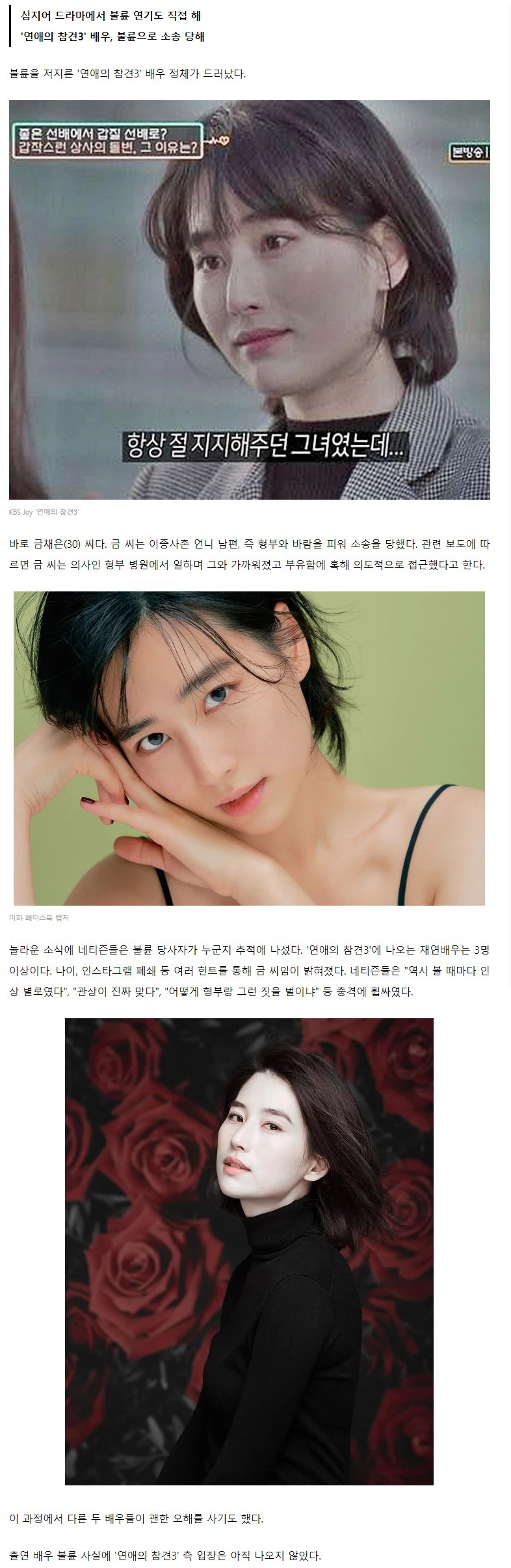 의사형부 재연배우 - 재연배우 a씨 의사 형부와 불륜.. 사촌 언니 b씨의 의사 남편인 형부와 불륜을 저질러 항간을 떠들썩하게 한 a씨는 b씨에게 상간녀 위자료로 거액을 지불한 것으로 알려졌다. 3일 알려진 바에 따르면 재연배우 a씨는 사촌언니 b씨에게 상간녀 위자료로 3천만 원을 지불했다. 의사 형부와 불륜으로 세간을 떠들썩하게 한 재연배우 a씨가 3000만원 상당의 위자료를 지급했다. 재연배우 금채은 의사 형부 바람 연애의 참견3 배우 불륜 사건 상간녀 위자료 나이 키 프로필. Kbs joy '연애의 참견 시즌3'에 출연 중인 재연배우가 형부와 불륜 행각을 하다가 들켰음에도 새살림을 차리려고 시도했다는 사실이.